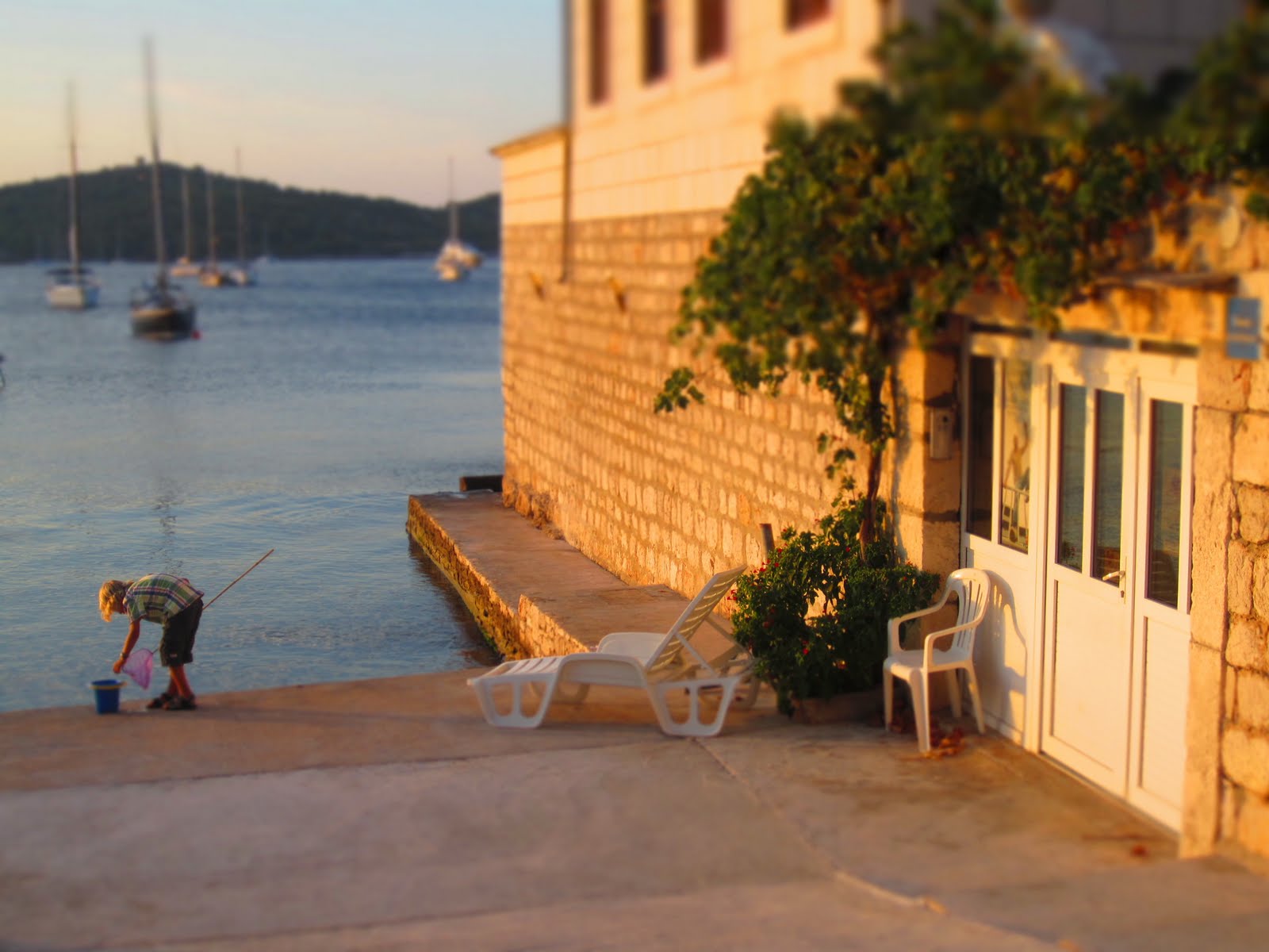 The next morning we got tickets for a 9:00am bus to Split, 3 hours south. We munched on some mediocre baked goods from a cute bakery and waited for our [late] bus. I was astounded to see how different Pag Island was from Rab, and Lovran. Almost a desert-like landscape, with few trees and soaring jagged, beige mountains. After another 3 hour layover (Split is amazing!) and 2 hour ferry, we alighted on Vis--the western most Croatian island in the Adriatic. Again, we went to the first agency we saw. From what we can gather, this agency deal is just a free-for-all private accommodation service. Individual owners list there room with an agency, we come to the agency and ask for a room, they show us what's available, and we negotiate. One couple was ahead of us and one behind, and apparently this agency only had one room available. In this case, the owner has their pick and it's just a game. We were about to leave, but after a call with room's owner, the first couple was ruled out (they only wanted two nights) and we won the game because we wanted four.